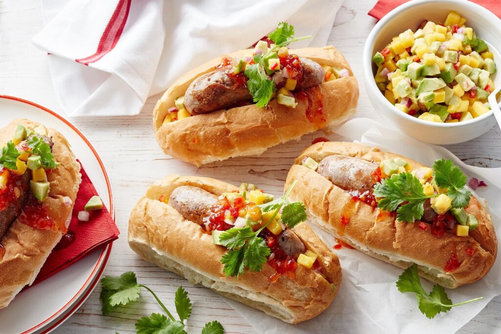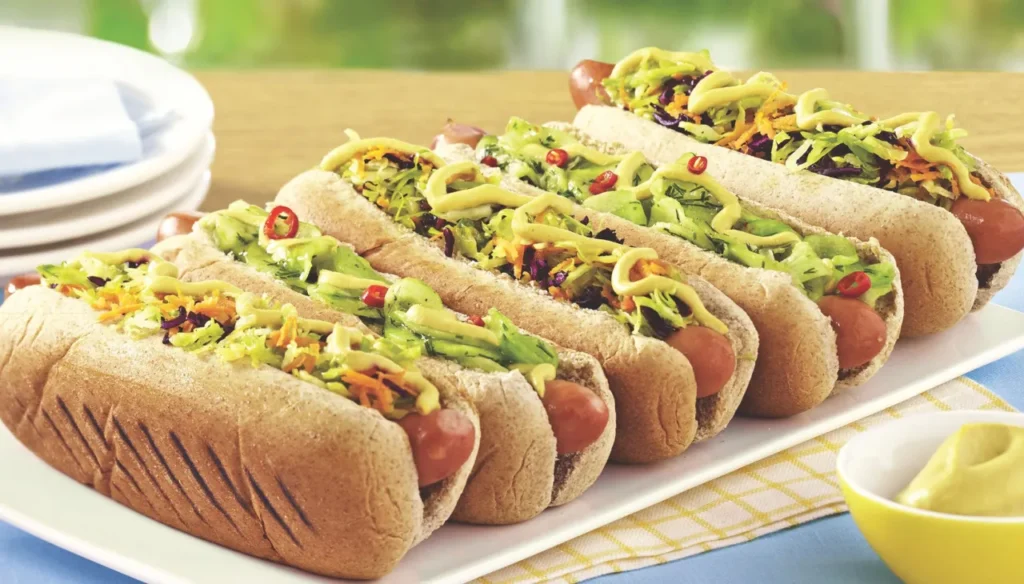 Loaded doesn’t mean loaded with regrets. Swap in turkey dogs (150 calories vs. 180 beef), whole-grain buns for fiber, and veggie-heavy toppings like grilled zucchini or mango salsa for antioxidants. Try our Buffalo Chicken Dog with avocado ranch: Use chicken franks, buffalo-seasoned yogurt sauce, and greens – just 380 calories but all the punch.