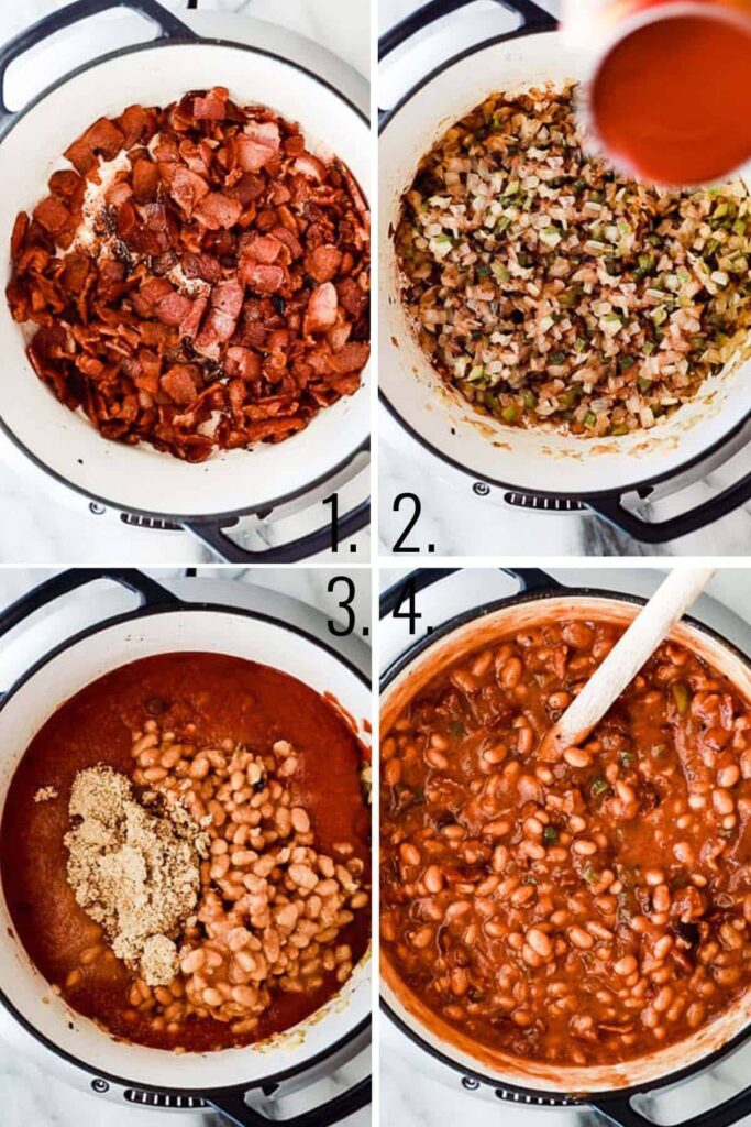 Step 1: Prep the meats and aromatics. In a large skillet, cook diced bacon until crisp (about 5 minutes). Add ground beef and chopped onion, browning for 7-8 minutes. Drain excess fat.